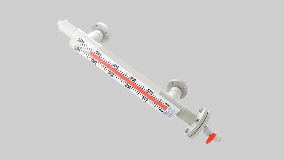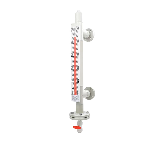 液位计根据浮力原理,浮子在测量管内随液位的升降而上下移动,浮子内的永久磁钢通过磁合作用,驱动红、白色翻柱翻转180液位上升时,翻柱由白色转为红色,下降时,翻柱由红色转为白色,从而实现液位的指示。