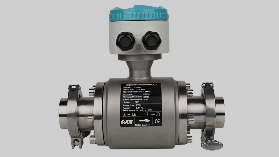 STLD卡箍式电磁流量计根据法拉第电磁感应定律进行流量测量。电磁流量计的优点是压损极小,可测流量范围大。更大流量与更小流量的比值一般为20:1以上,适用的工业管径范围宽,输出信号和被测流量呈线性,精度较高,可测量电导率≥5μs/cm的液体。 QTLD电磁流量计卡箍式安装方式具有安装、清洗方便等优点,常应用于食品生产、制药行业药剂测量以及净水监测等场合。
